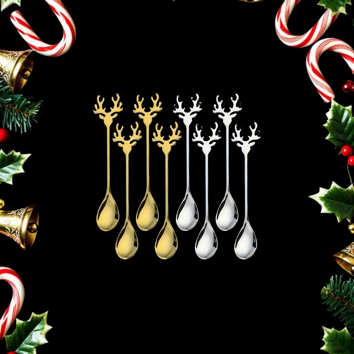smartcook™ Weihnachtliches Löffelset Rentier Design (4er Set) - Gold/Silber