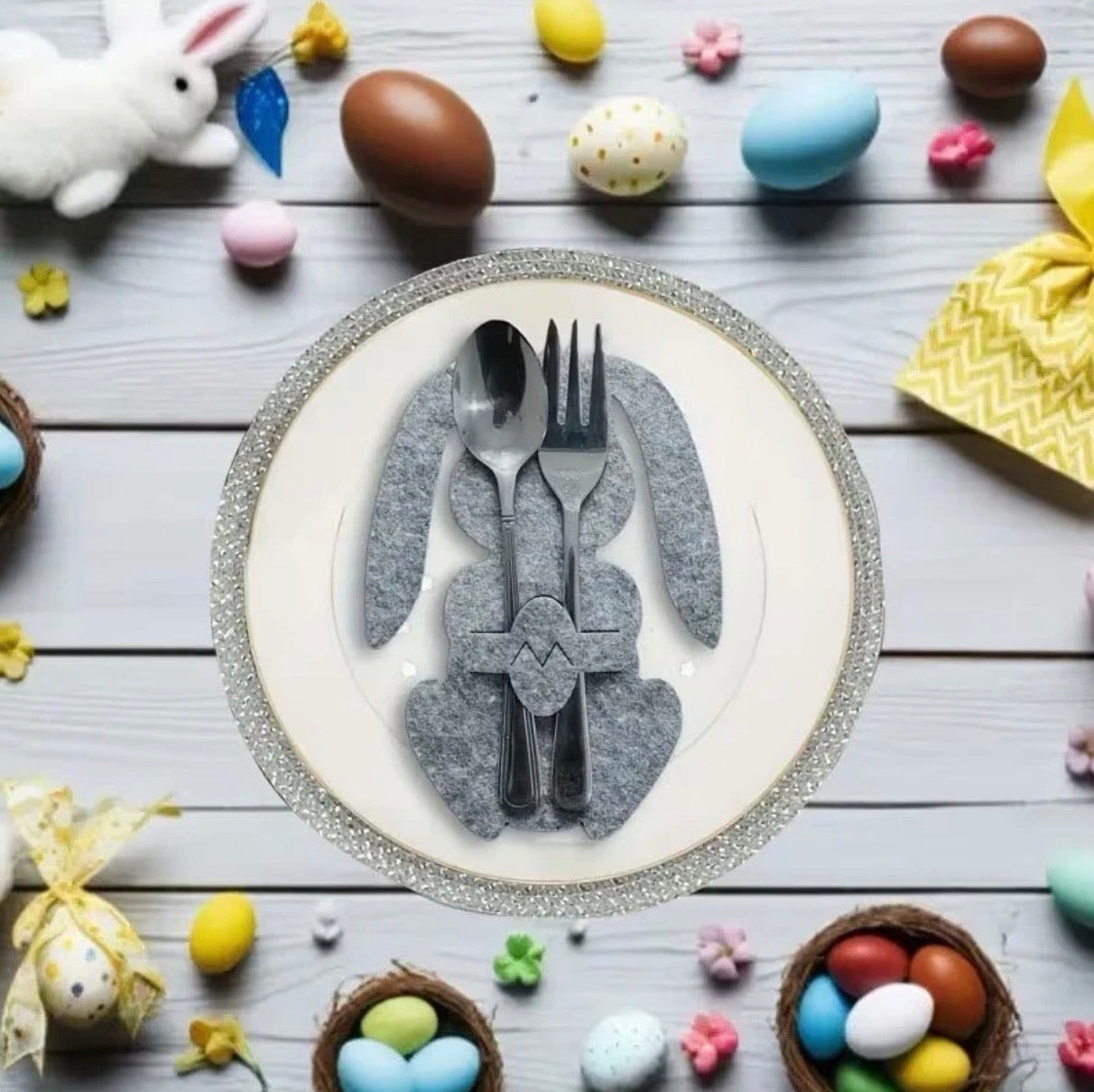 smartcook™ Filz Hasen Besteckhalter Set – Oster Tischdeko für Teller - Ostern
